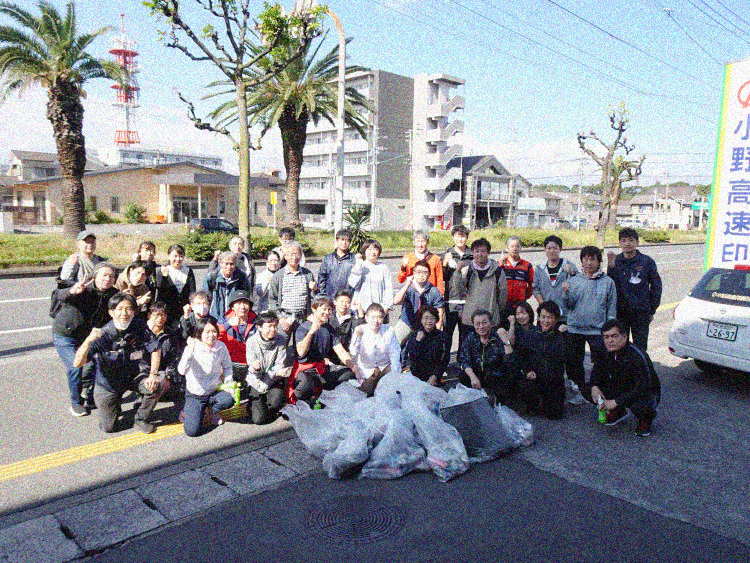 第2グループは、社屋から花高松方面までを2時間かけて清掃活動を行いました。朝は少し肌寒かったですが、清掃活動には最適な気候でした。最初は皆さん「ゴミ拾い」でしたが、ゴミを拾う度に綺麗になっていく喜びから徐々に宝探しのように「こんなにあった~!!」と清掃活動を楽しみながら行う事ができました。今回も参加された皆さんのおかげでこんなにゴミを拾うことができました。